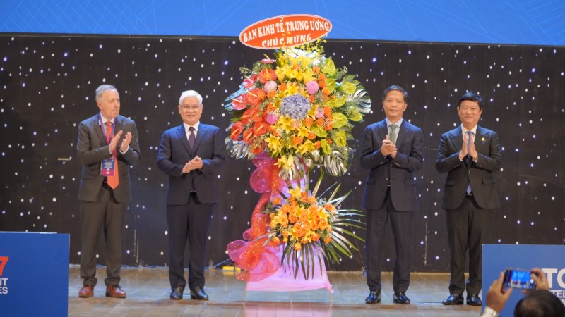 | Ủy viên Bộ Chính trị, Trưởng Ban Kinh tế Trung ương Trần Tuấn Anh tặng hoa chúc mừng Bình Dương lọt vào TOP 7 cộng đồng có Chiến lược phát triển Thành phố thông minh tiêu biểu trên thế giới của năm 2022. |