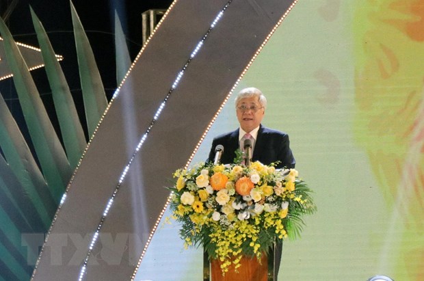 | Ông Đỗ Văn Chiến, Bí thư Trung ương Đảng, Chủ tịch Ủy ban Trung ương Mặt trận Tổ quốc Việt Nam phát biểu tại lễ khai mạc. (Ảnh: Quân Trang/TTXVN) |