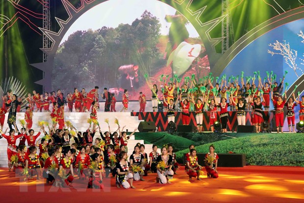 | Biểu diễn nghệ thuật tại lễ khai mạc. (Ảnh: Quân Trang/TTXVN) |
