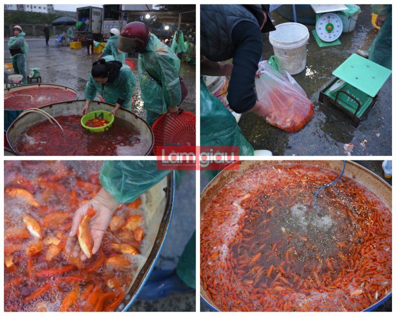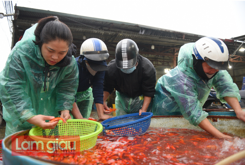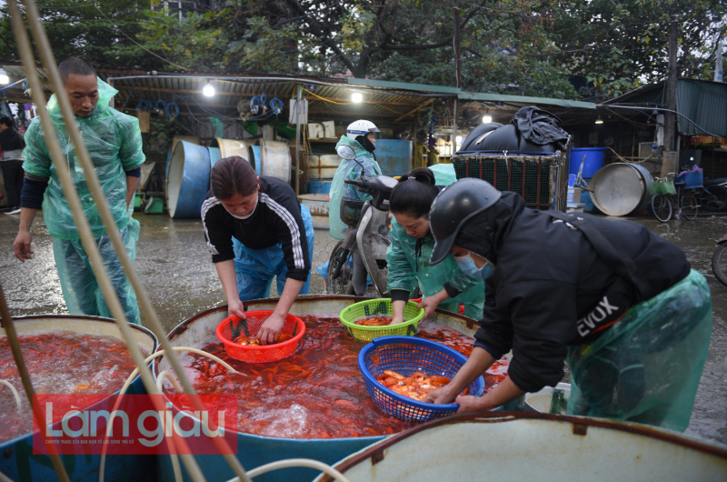 Những ngày giáp Tết, nhất là trước lễ cúng ông Công, ông Táo, hàng trăm tiểu thương tất bật cho việc chăm sóc và vận chuyển cá chép phục vụ nhu cầu của người dân Hà Nội.