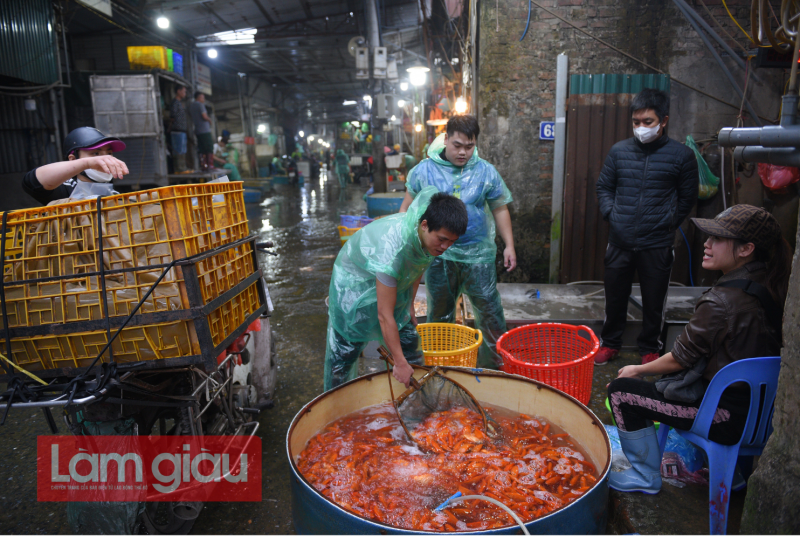 (LG) Trước ngày 23 tháng Chạp, chợ cá lớn nhất miền Bắc tại làng Sở Thượng (phường Yên Sở, quận Hoàng Mai, Hà Nội) tấp nập bởi các tiểu thương và người dân tìm tới mua cá chép đỏ.