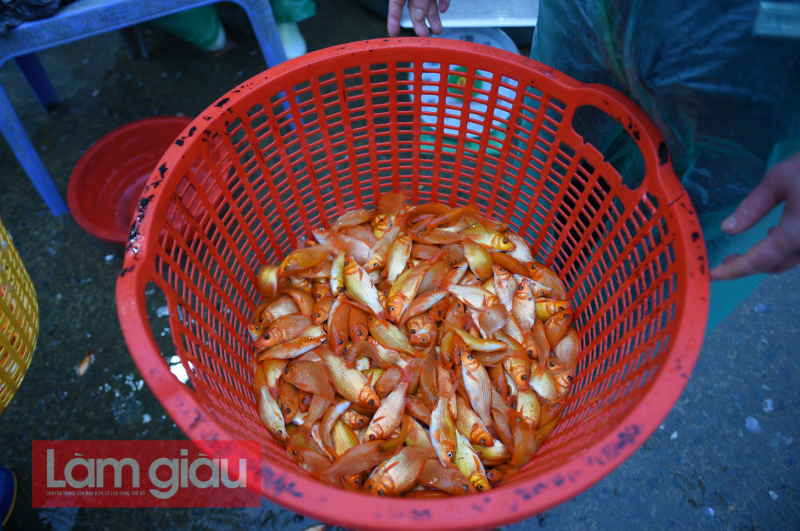 Theo các tiểu thương ở đây, năm nay do sản lượng cá nuôi được nhiều, nên giá rẻ hơn rất nhiều so với năm ngoái. "Cá chép vàng, đỏ bán đắt hàng nhất vào hai ngày 22 và 23 tháng Chạp, từ chiều ngày hôm trước (ngày 21 tháng Chạp) hàng chục xe tải đã nối đuôi nhau đến chợ để chuyển cá cho các thương lái. So với cá chép vàng thì cá chép đỏ được nhiều người lựa chọn hơn bởi cá khỏe, màu sắc tươi tắn", một tiểu thương cho hay.