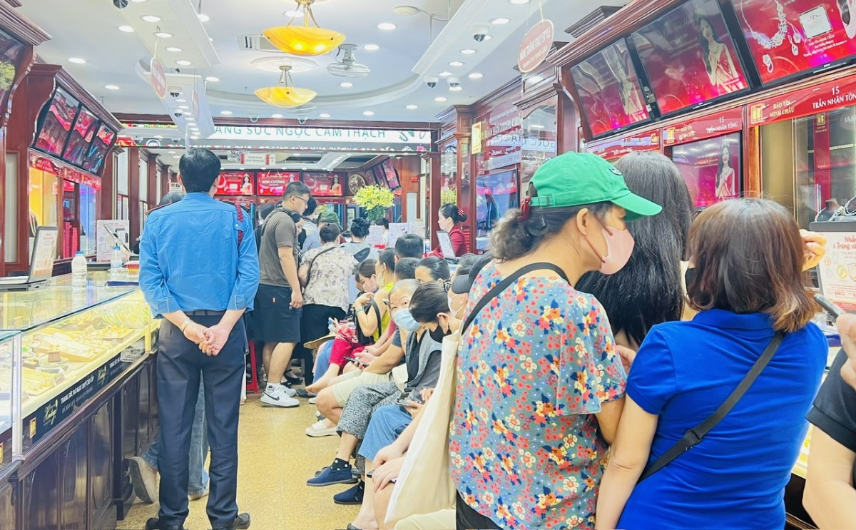 | Thời gian vừa qua, cảnh nhiều người dân xếp hàng chờ cả ngày dài chỉ để mua 1 - 2 chỉ vàng diễn ra liên tục. (Ảnh: Lê Hà) |