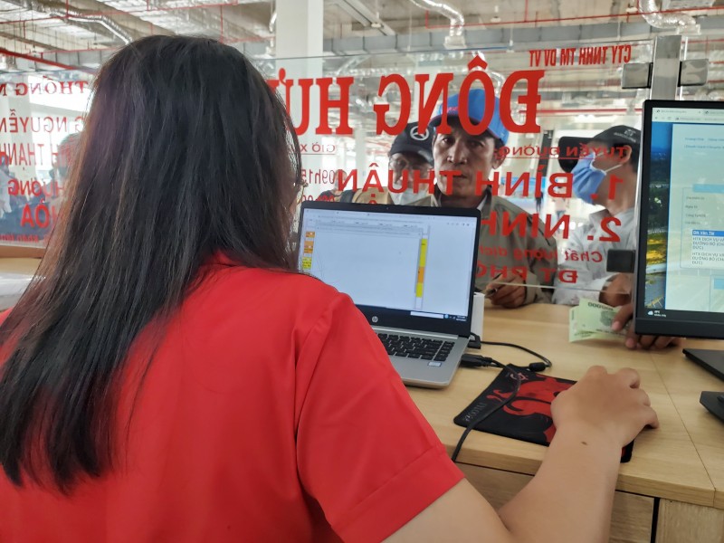 | So với cảnh nhộn nhịp bán vé tại bến xe miền Đông cũ, nhân viên bán vé tại bến xe miền Đông mới khá nhàn rỗi. |