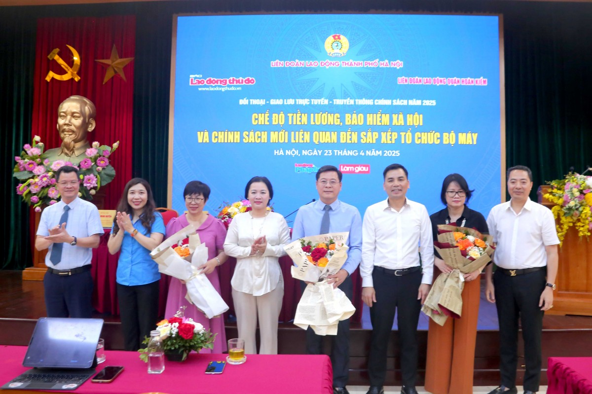 Tham dự buổi Đối thoại trực tiếp, giao lưu trực tuyến có các đại biểu: Ông Lê Đình Hùng, Phó Chủ tịch Thường trực Liên đoàn Lao động Thành phố; bà Lê Anh Thư, Phó Chủ tịch UBND quận Hoàn Kiếm; ông Nguyễn Văn Bình, Tổng biên tập Báo Lao động Thủ đô; bà Lê Hoàng Thủy Vân, Chủ tịch LĐLĐ quận Hoàn Kiếm; ông Đinh Tuấn Anh - Phó Tổng Biên tập Báo Lao động Thủ đô.