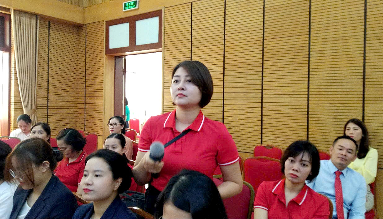 | Chị Đào Thu Hường đặt câu hỏi với chuyên gia. |