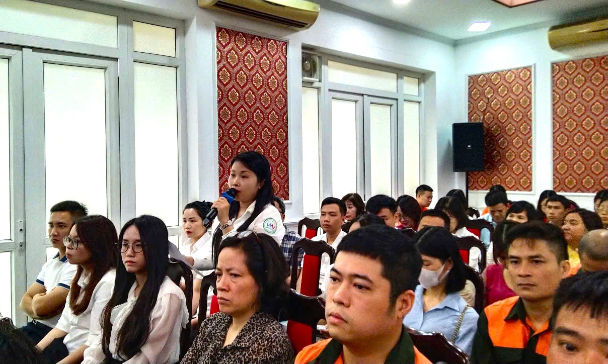 | Chị Nguyễn Hà Thu, Công ty TNHH MTV Đường sắt Hà Nội nêu câu hỏi về Luật Công đoàn. |