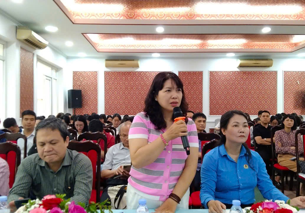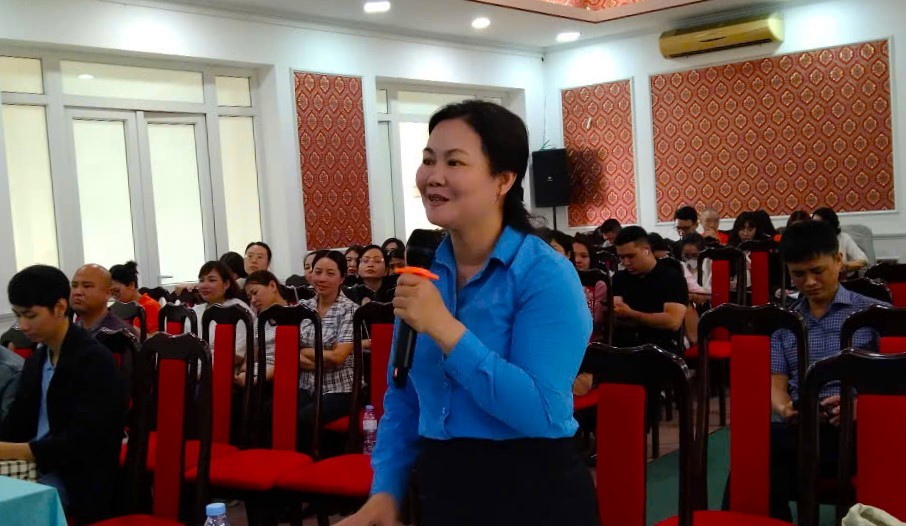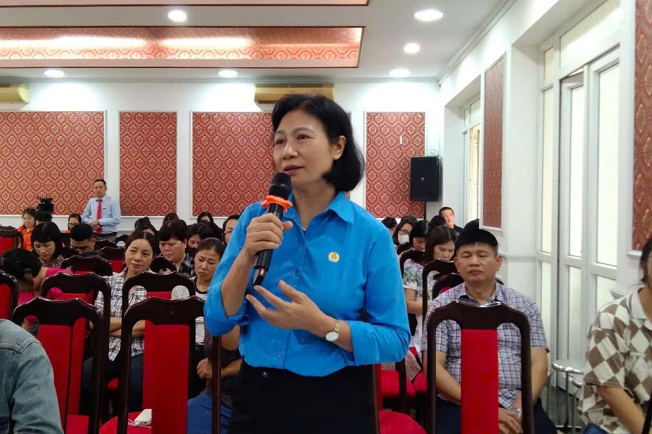 | Nguyễn Thị Thu Hằng, Phó Chủ tịch Công đoàn ngành giao thông vận tải Hà Nội nêu câu hỏi. |