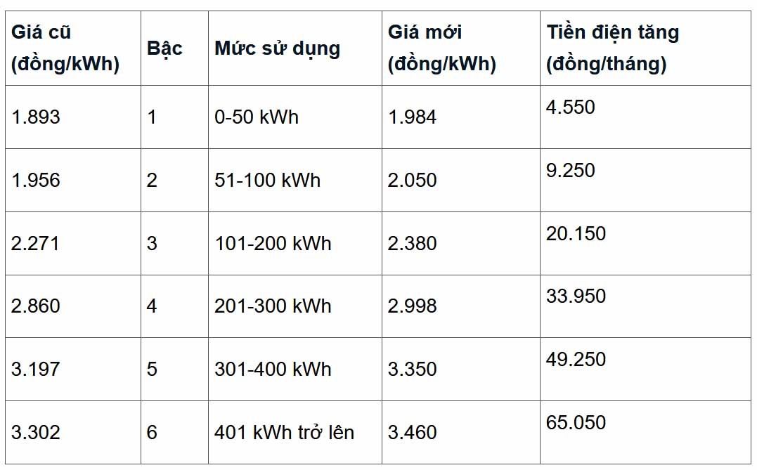 | Biểu giá bán lẻ điện sinh hoạt từ ngày 10/5. |