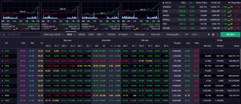 | Kết thúc phiên giao dịch ngày 23/8, VN-Index tăng 10,38 điểm (+0,82%) lên 1.270,81 điểm |